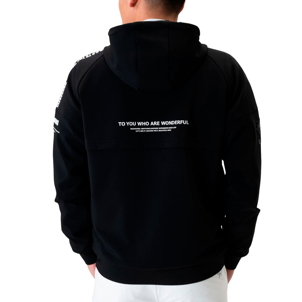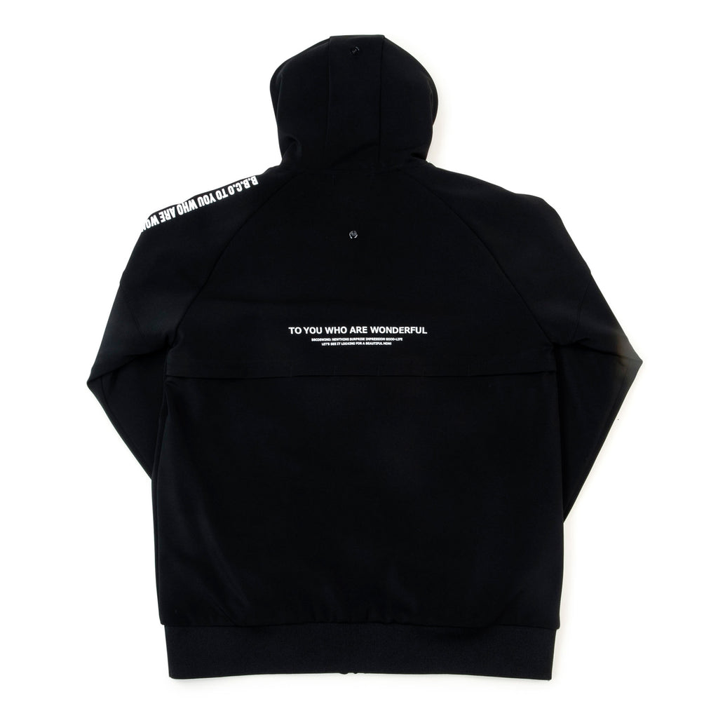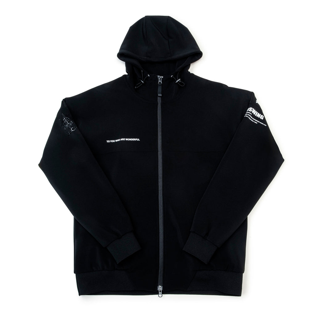 フロントはダブルジップになっており、上下どちらからでもファスナーの上げ下げが可能。