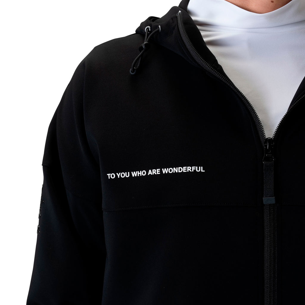 右腕の太陽ロゴがワンポイントの、利便性とシルエットの美しさを兼ね備えた一着です。